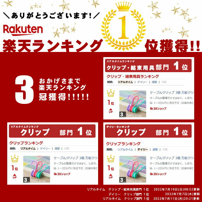 ケーブルクリップ 3個 万能クリップ マグネットクリップ コードクリップ 磁力 コード 巻き取り ケーブル コード まとめる 整理 収納 【ケーブルクリップ】 ケーブルの整理だけではなく、しおり、食品袋止め、マグネットなどとしても!使い方はあなた次第! 2